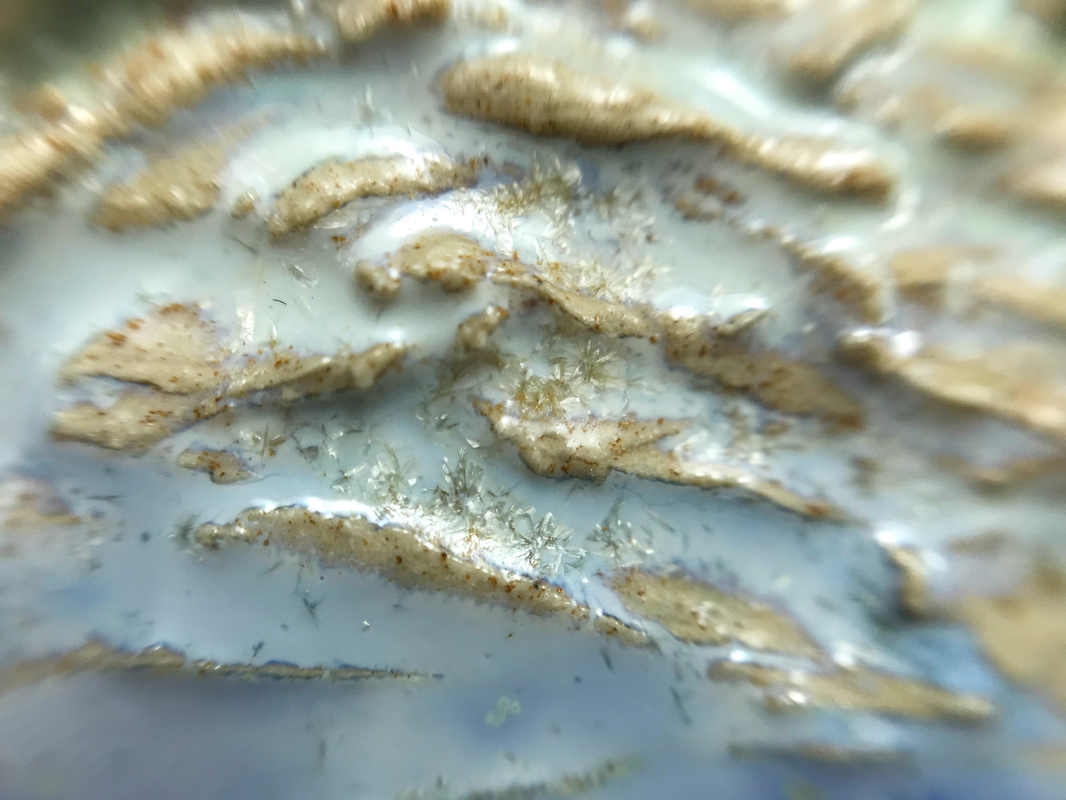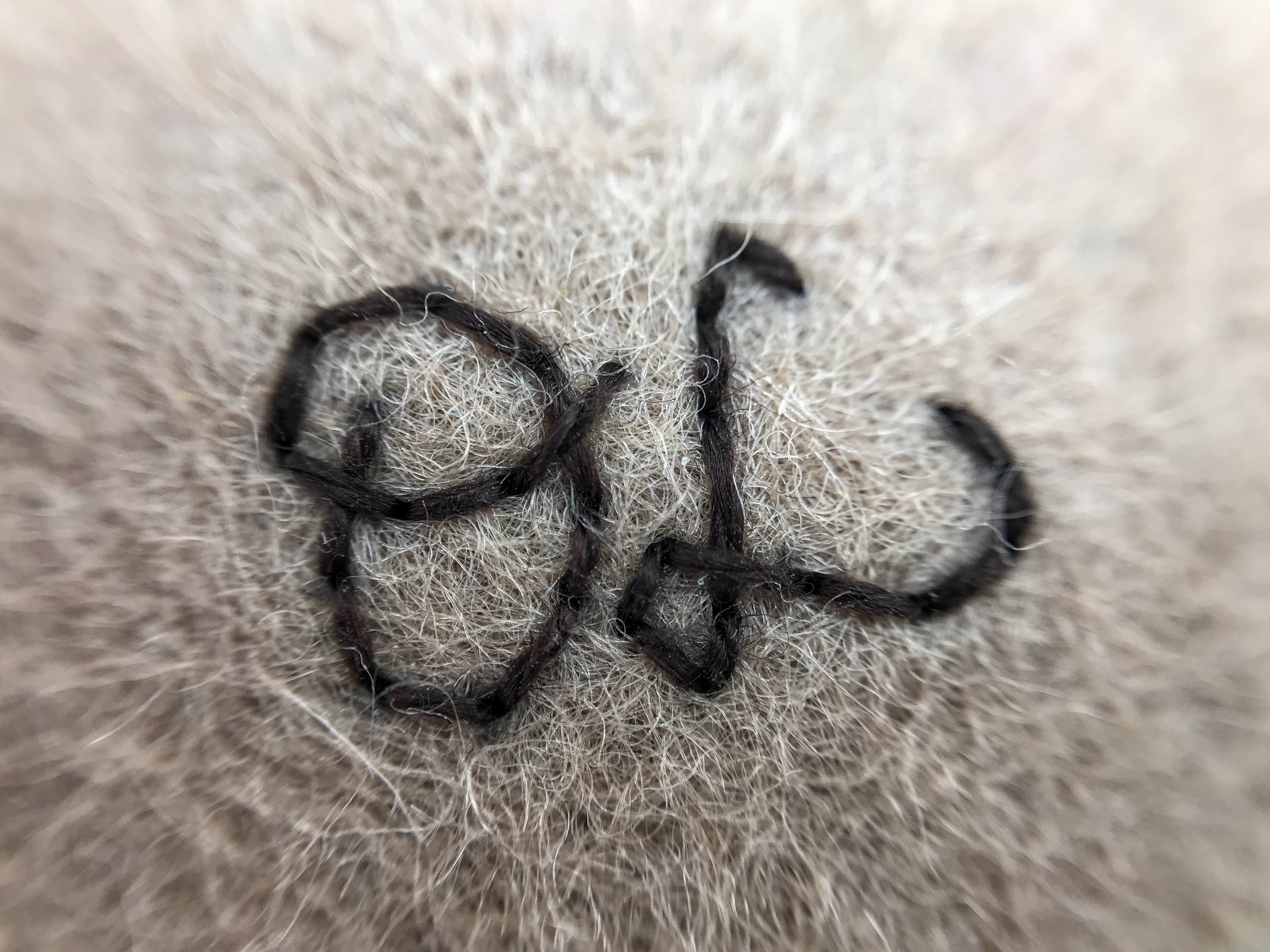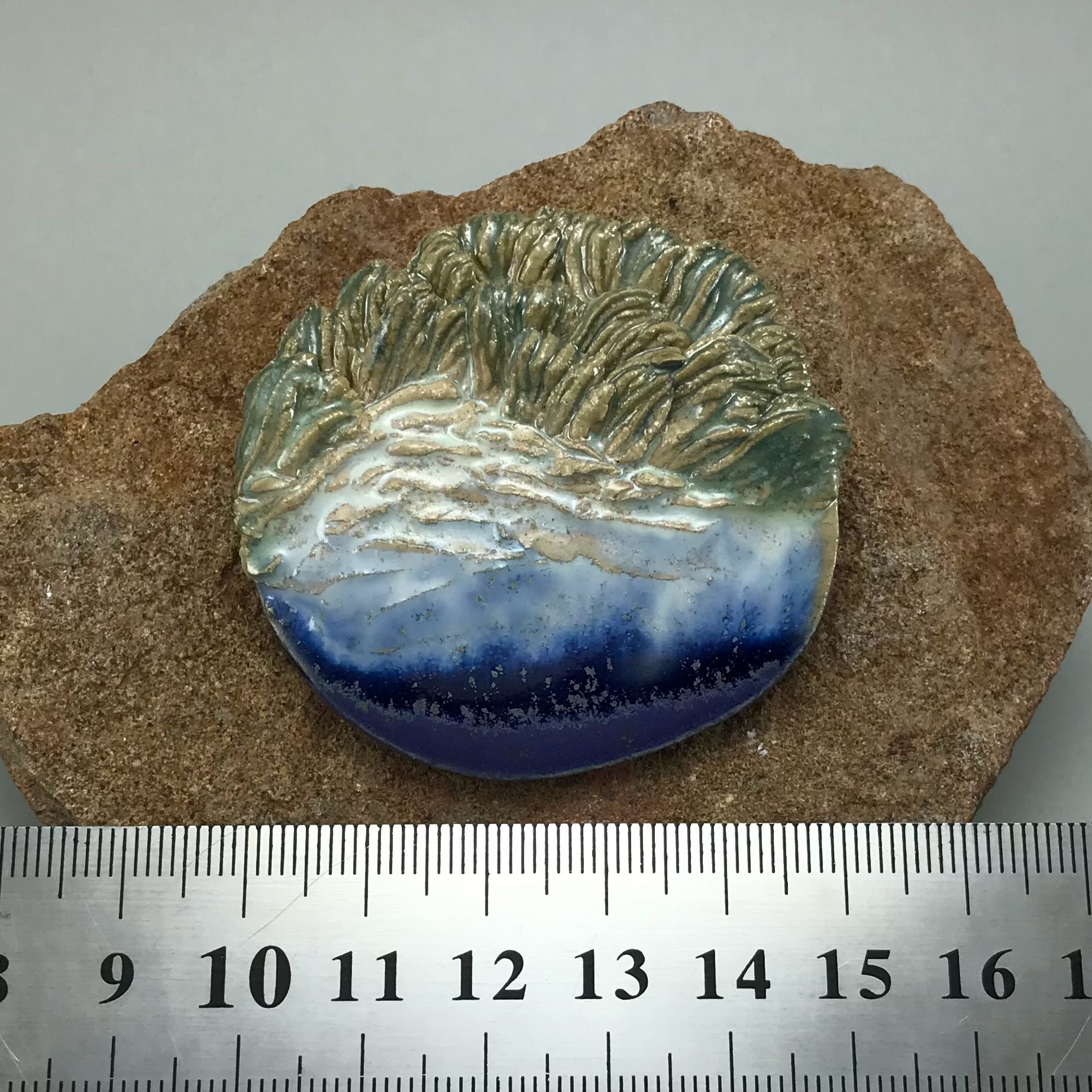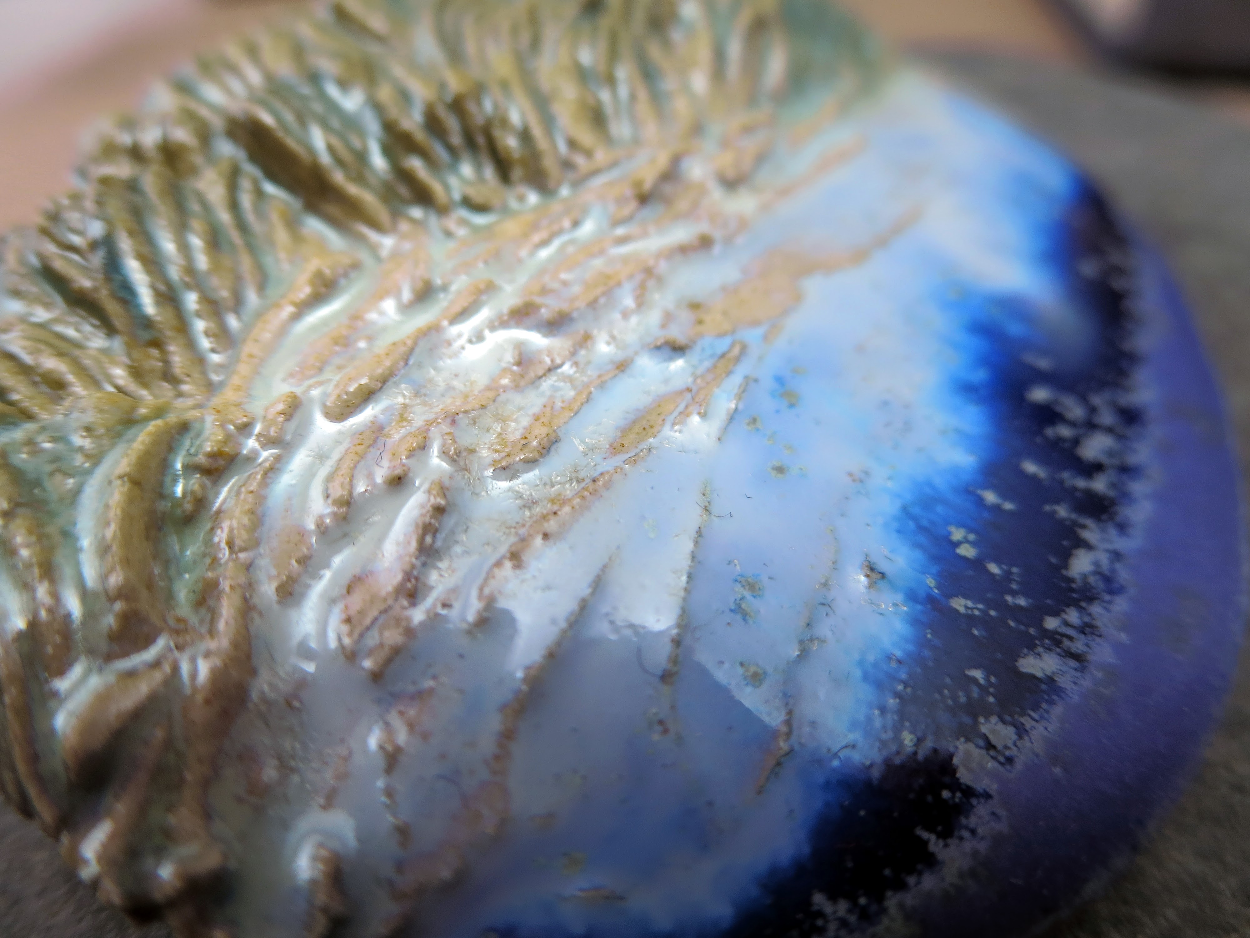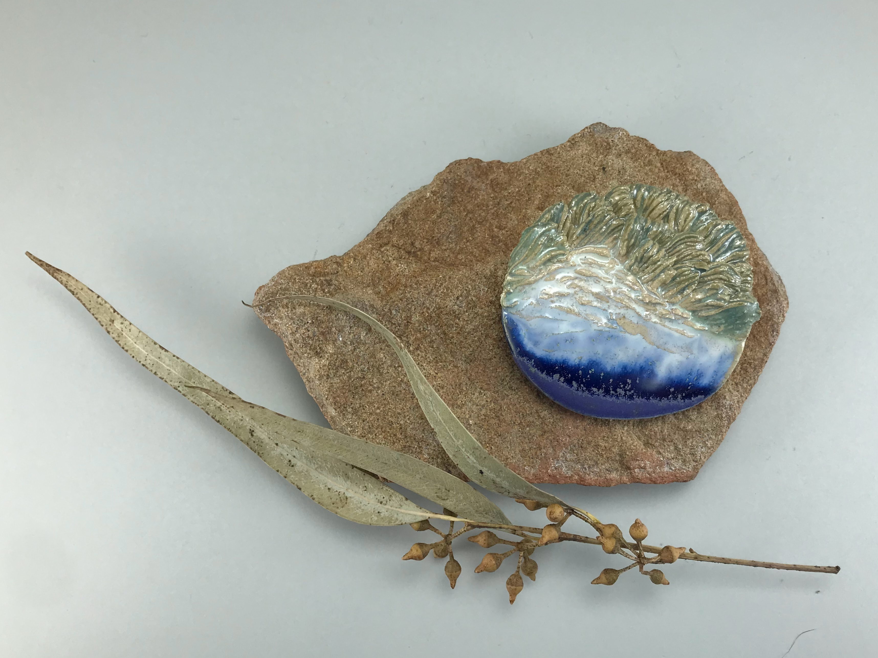 Materials: Sibelko clay, Welte glazes, high firing at 1222°C, natural wool, Japanese pin.