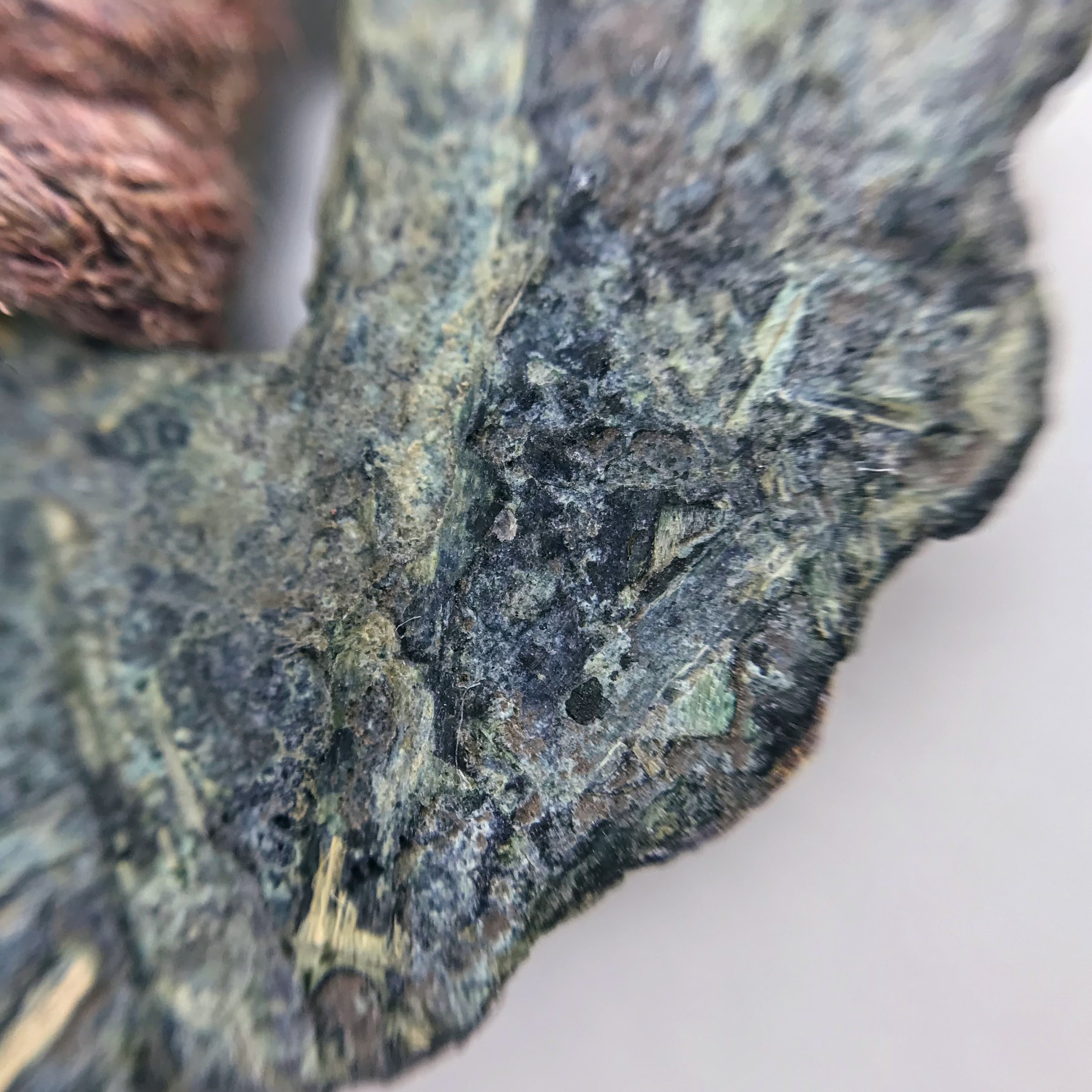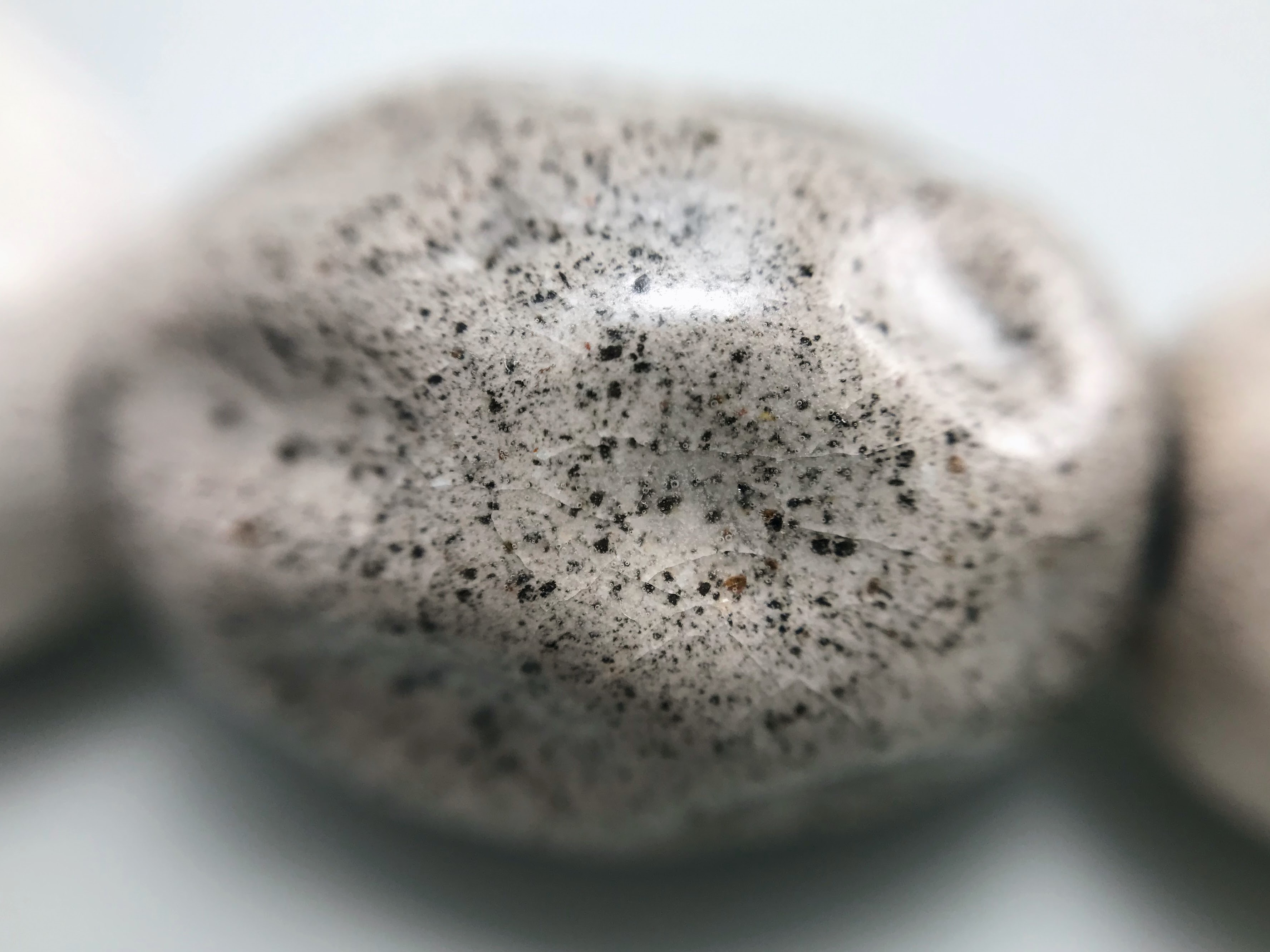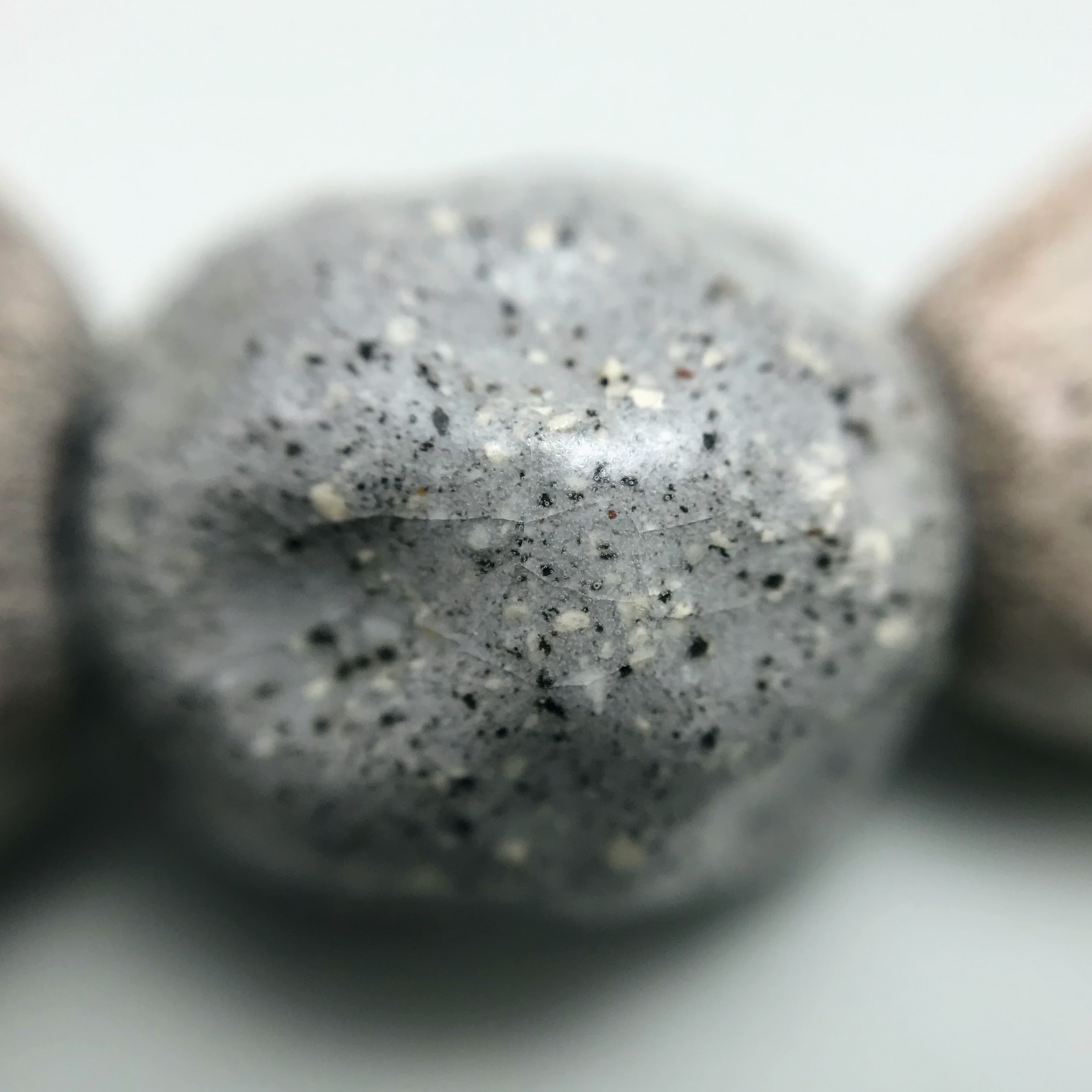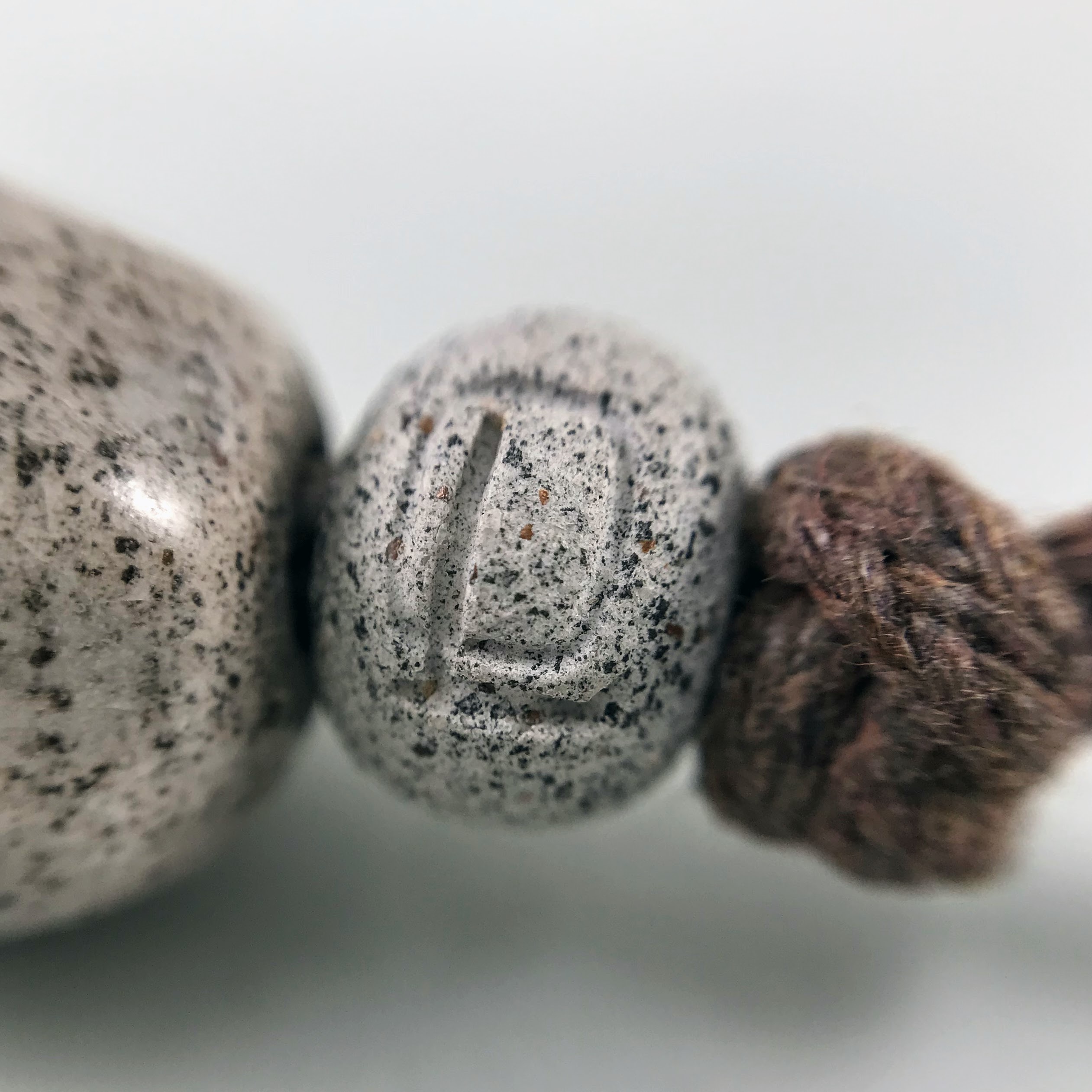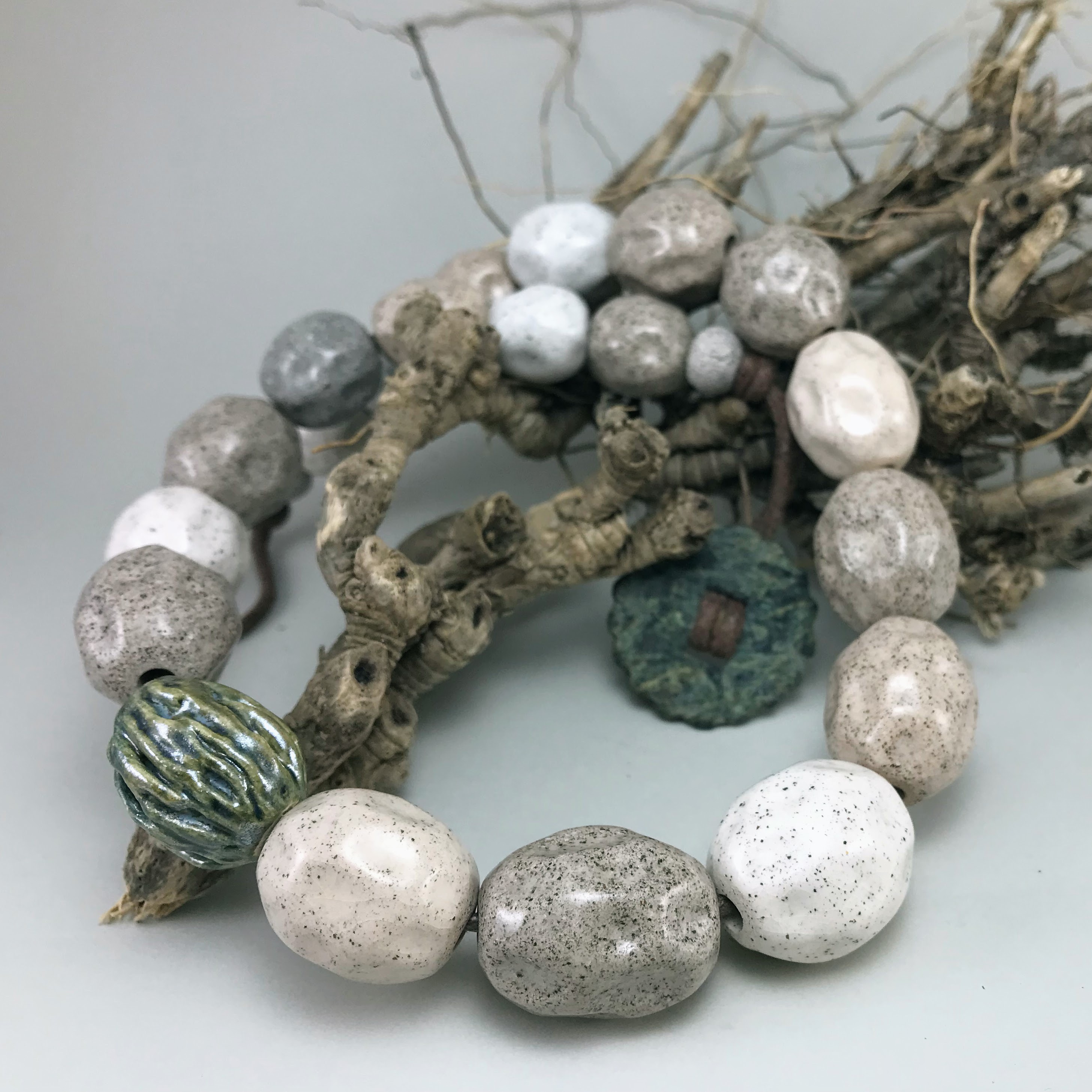 Materials: Sibelco clay, Botz and Welte glazes, cotton cord, antique metal button.