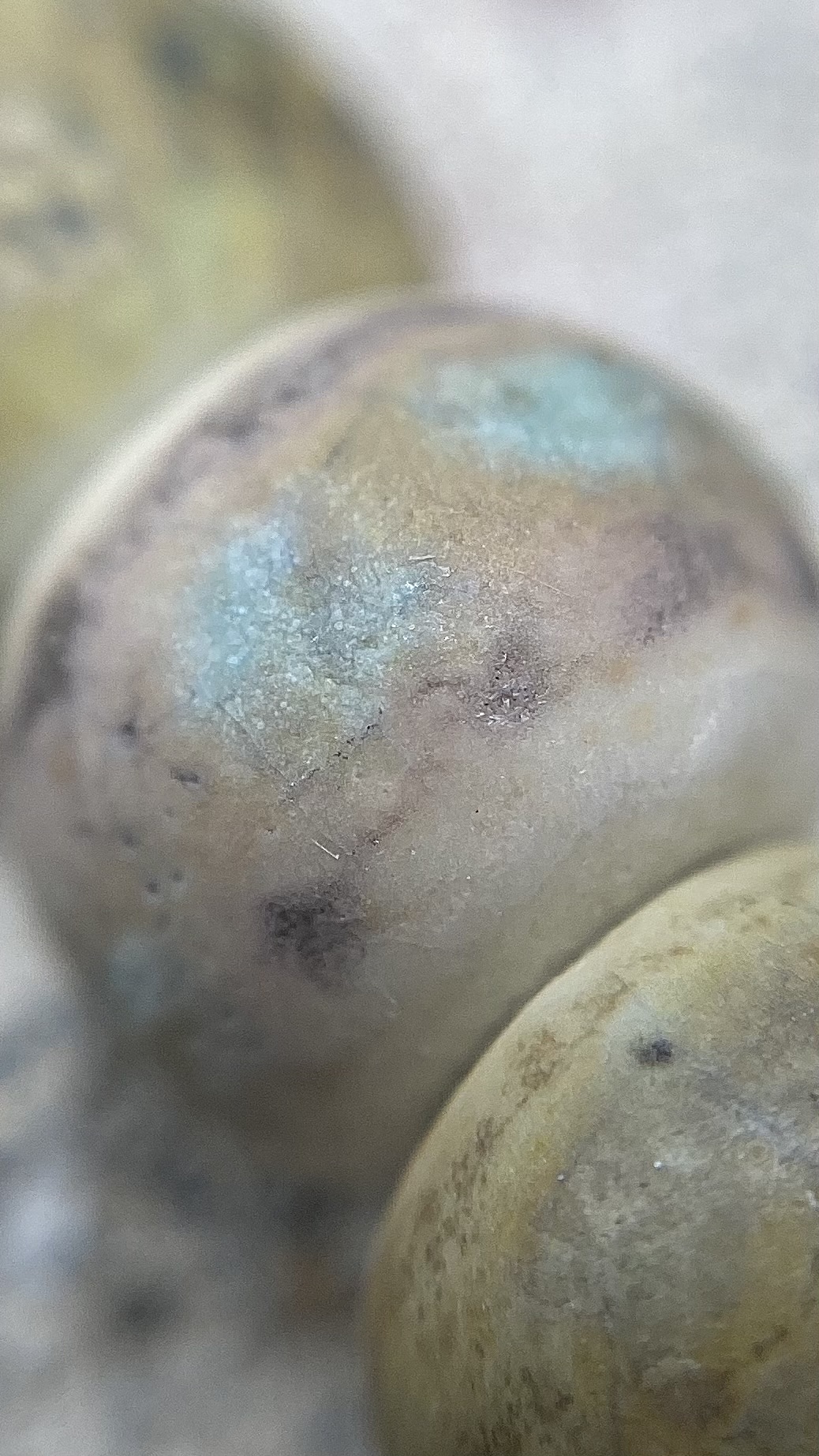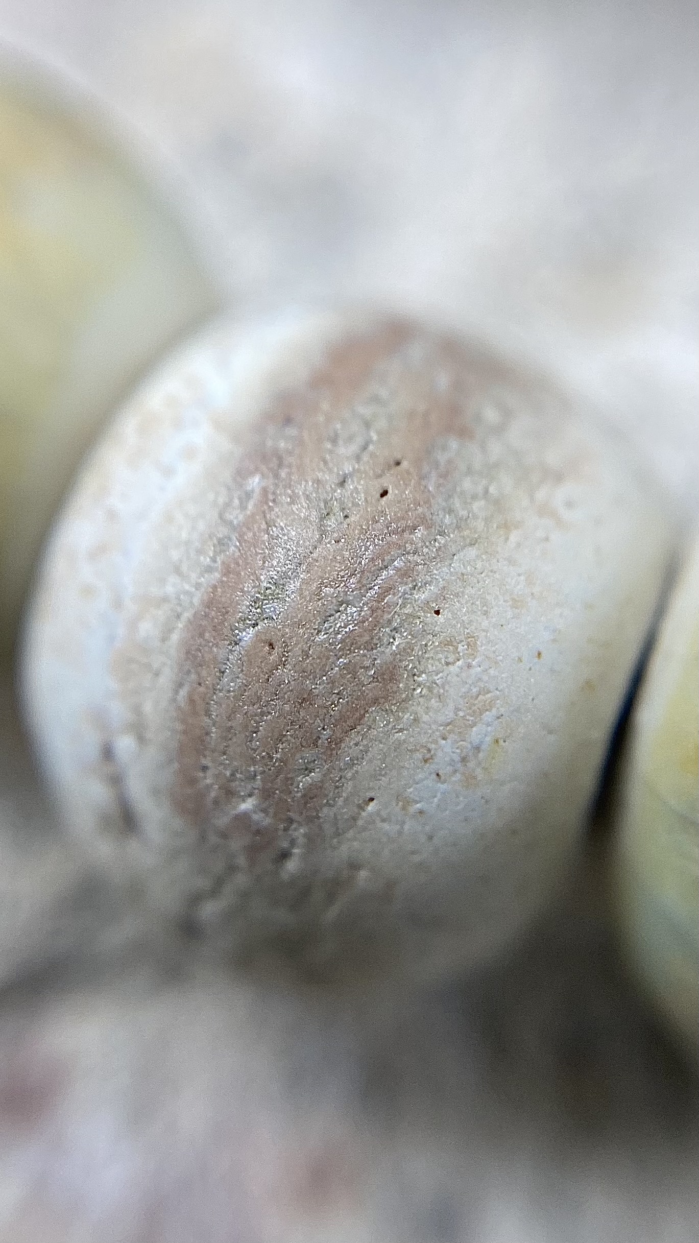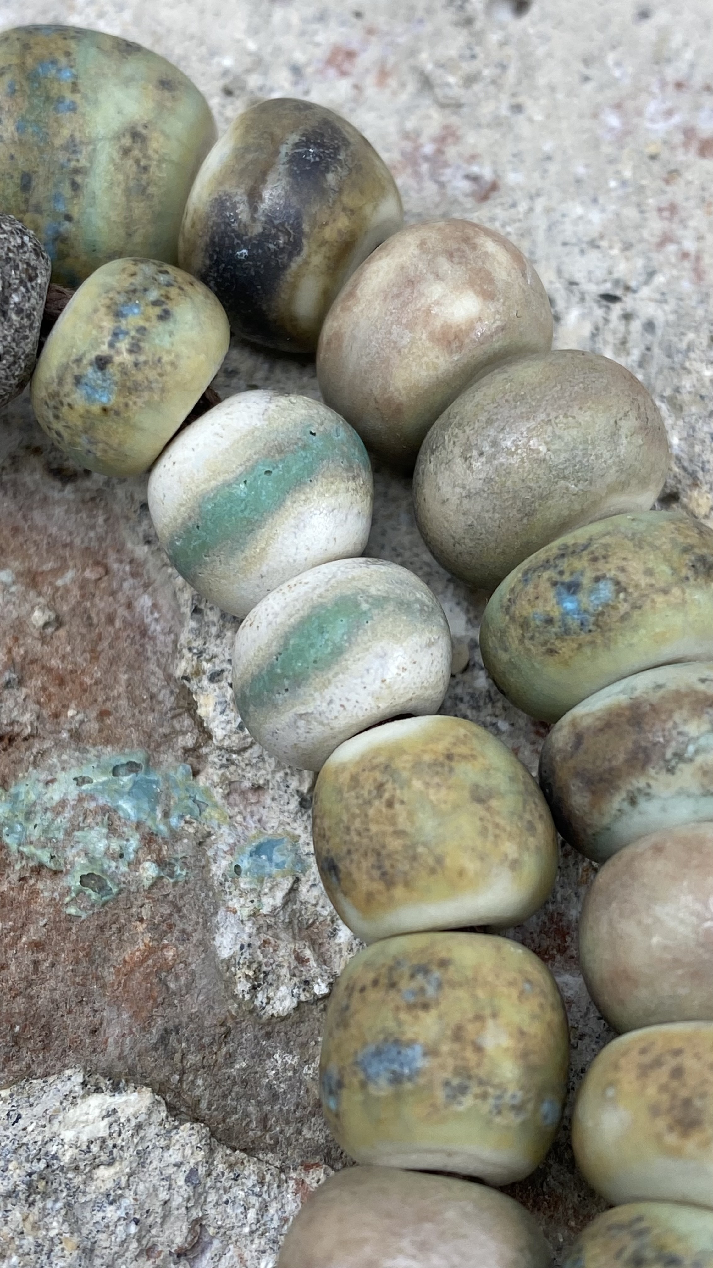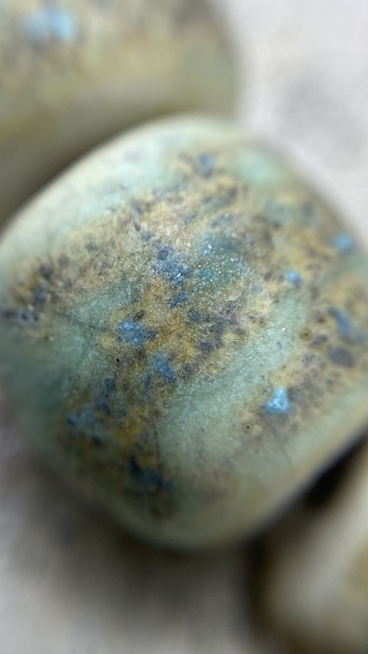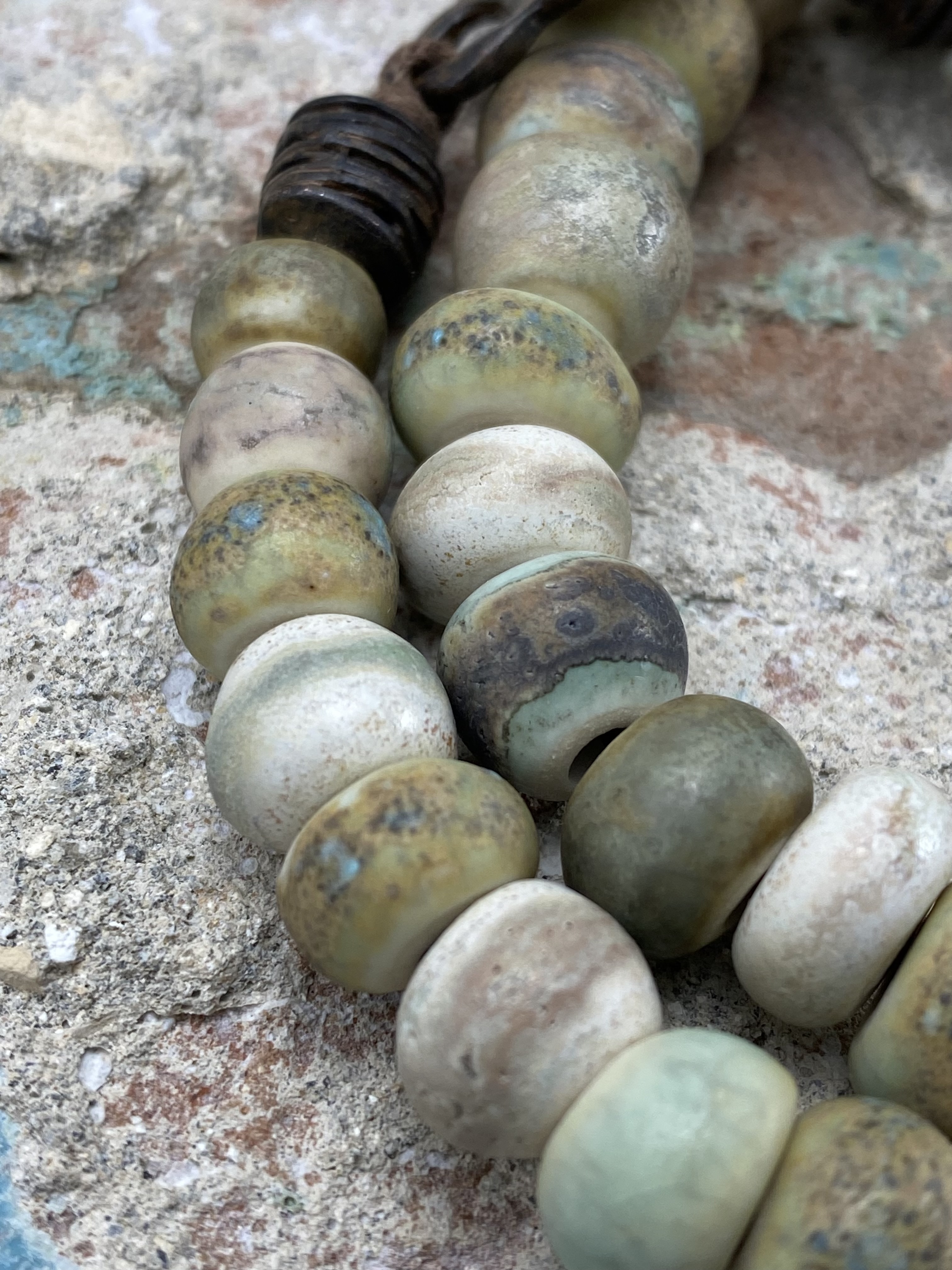 Materials: Sibelco clay, Welte glazes, AGM glazes, cotton cord, two handmade pewter beads and a toggle clasp.